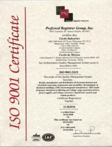 Tri-Mag is proud to be an ISO 9001:2008 certified electrical component manufacturer. Having an ISO 9001:2015 certification is a sign of quality products and practices. The ISO 9001 scope of endorsement includes all aspects of the design, manufacturing and distribution of Tri-mag products including: